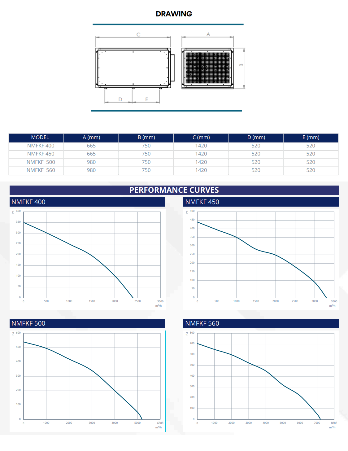 NMFKF fans are designed to prevent the hood exhaust air from disturbing the guests in industrial and commercial kitchens such as hotel, restaurant kitchens. Sliding designed filter and fan provide easy cleaning and maintenance.