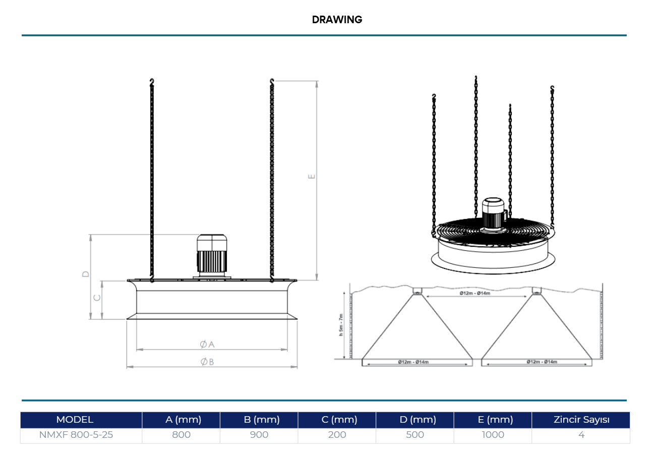 | MODEL | VOLTAGE (V) | FREQUENCY (Hz) | POWER (kW) | TRANSFER (d/dk) | FLOW (m³/h) | SOUND LEVEL (dB(A)) |
