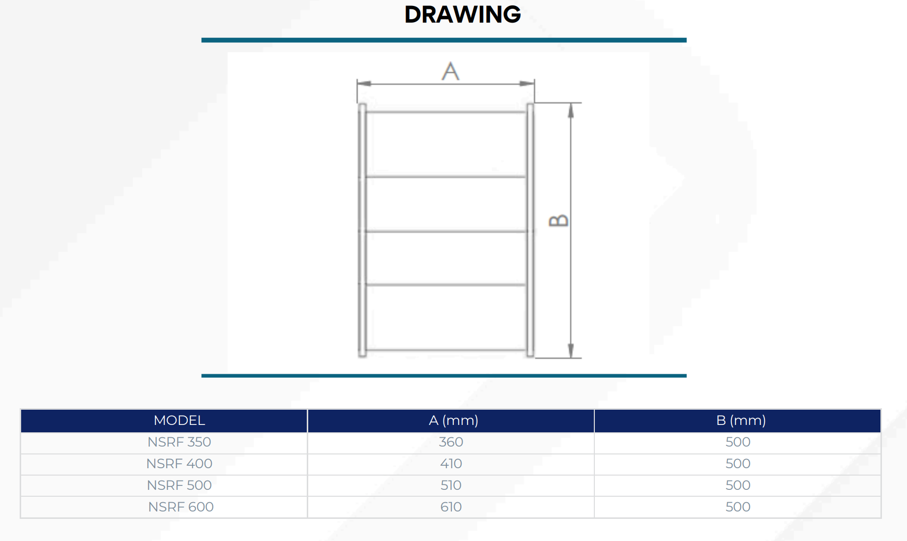 | NSRF 400 | 230 | 50 | 250 | 1.365 | 5.890 | 73 |