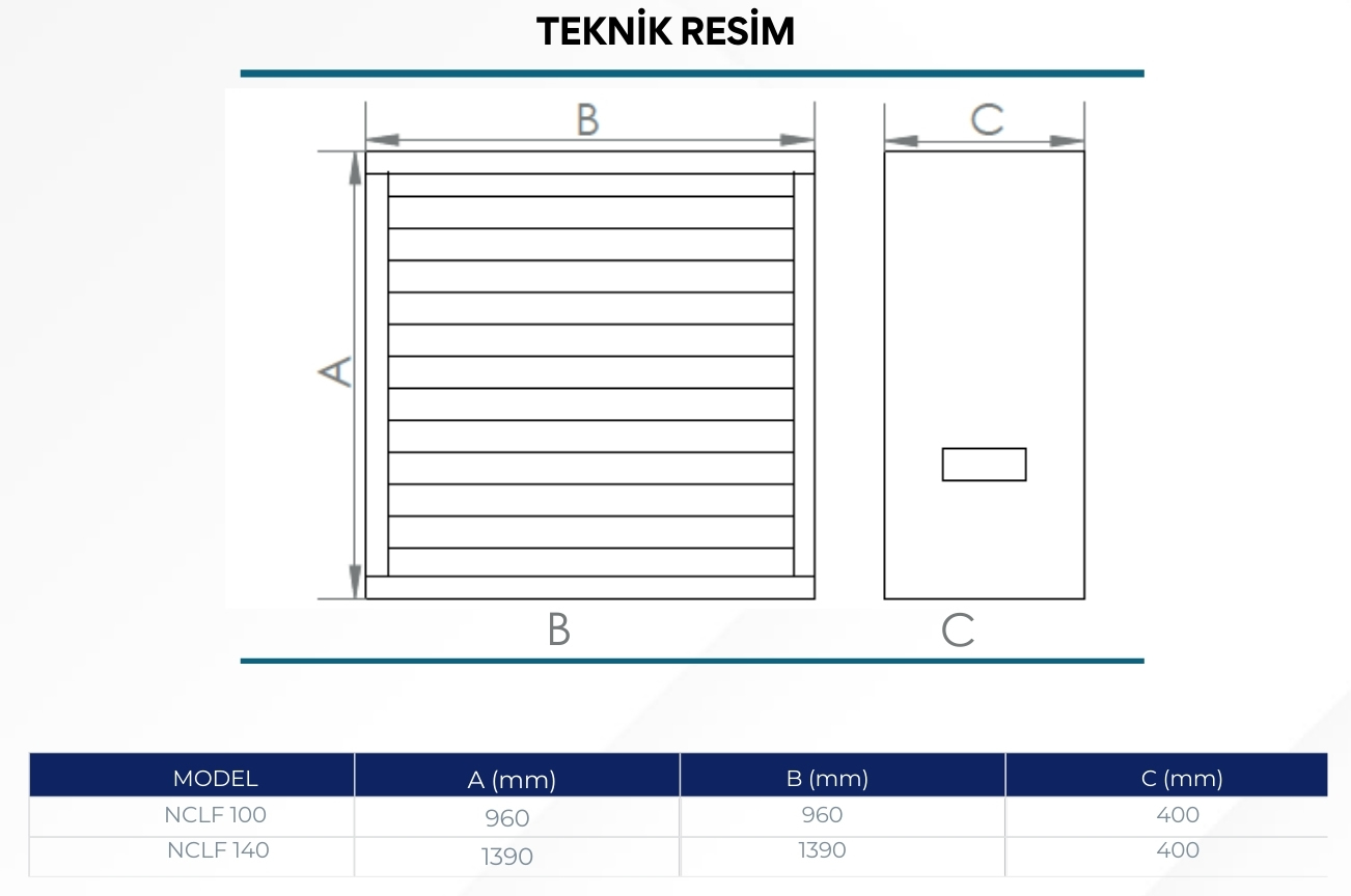 | MODEL | VOLTAJ (V) | FREKANS (Hz) | GÜÇ (kW) | DEVİR (d/dk) | DEBİ (m³/h) | SES SEVİYESİ (dB(A)) |